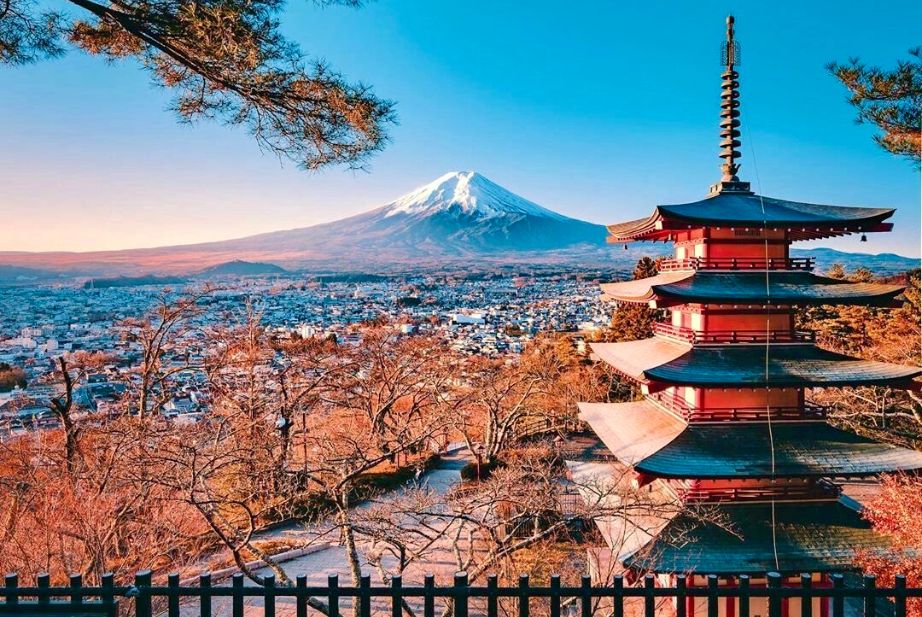 Enjoy the classic view of Mount Fuji framed by a five-story pagoda, especially beautiful in cherry blossom season